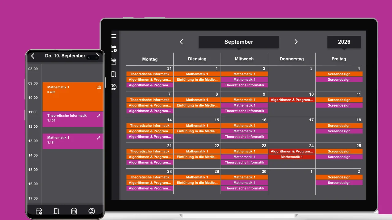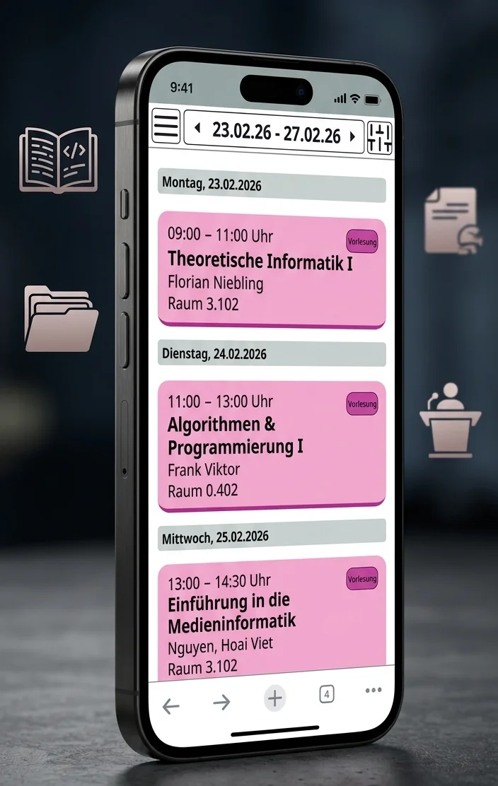 Im diesjähringen Projekt gestalten wir das neue Frontend für die Veranstaltungsübersicht an der Fakultät 10. Das zugrunde liegende System ist bereits implementiert – unser Fokus liegt auf der Gestaltung der Schnittstelle (Interface), die Studierende, Lehrende und Mitar... Mehr erfahren