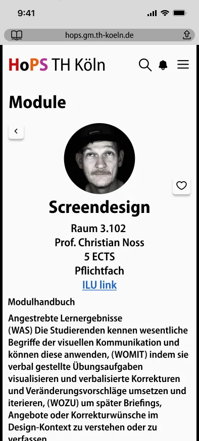Da fast jeder Student sein Smartphone dabei hat und da es auch fast immer griffbereit ist haben wir das mobile Design priorisiert. Damit man auf dem Smartphone alles gut lesen kann haben wir uns dazu entschieden, als Hauptstundenplan einen Tagesplan zu verwenden. Man kann zwischen den Tagen hin und her swipen, dadurch hat man keinen Informationsverlust durch die kleinere Form. Um das Design ein bisschen zu modernisieren haben wir uns für leicht abgerundete Ecken entschieden. Um zu gewährleisten, dass das neue Design aber noch zur TH Köln passt haben wir uns an den Farben und Schriftarten der TH Köln Website bedient.