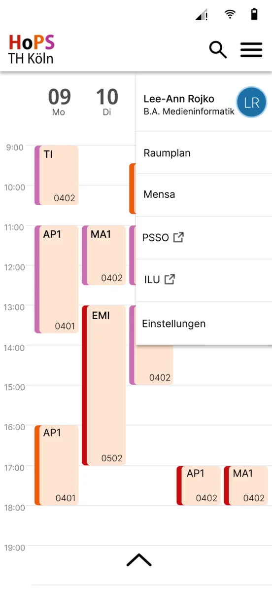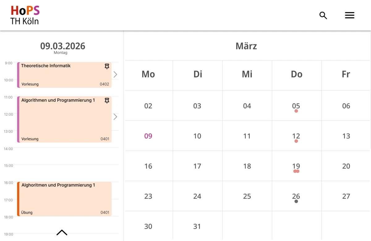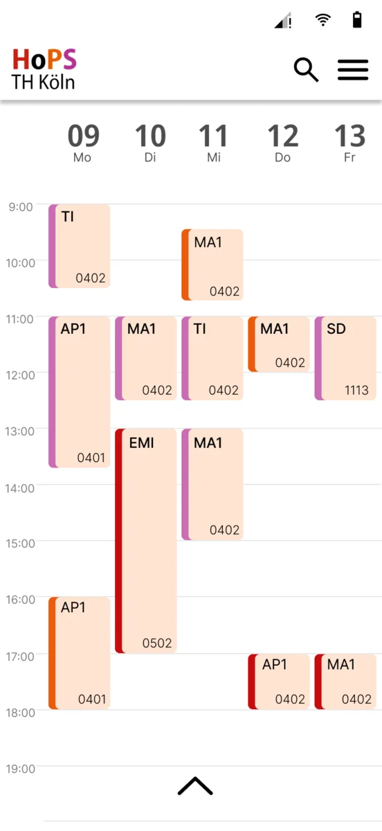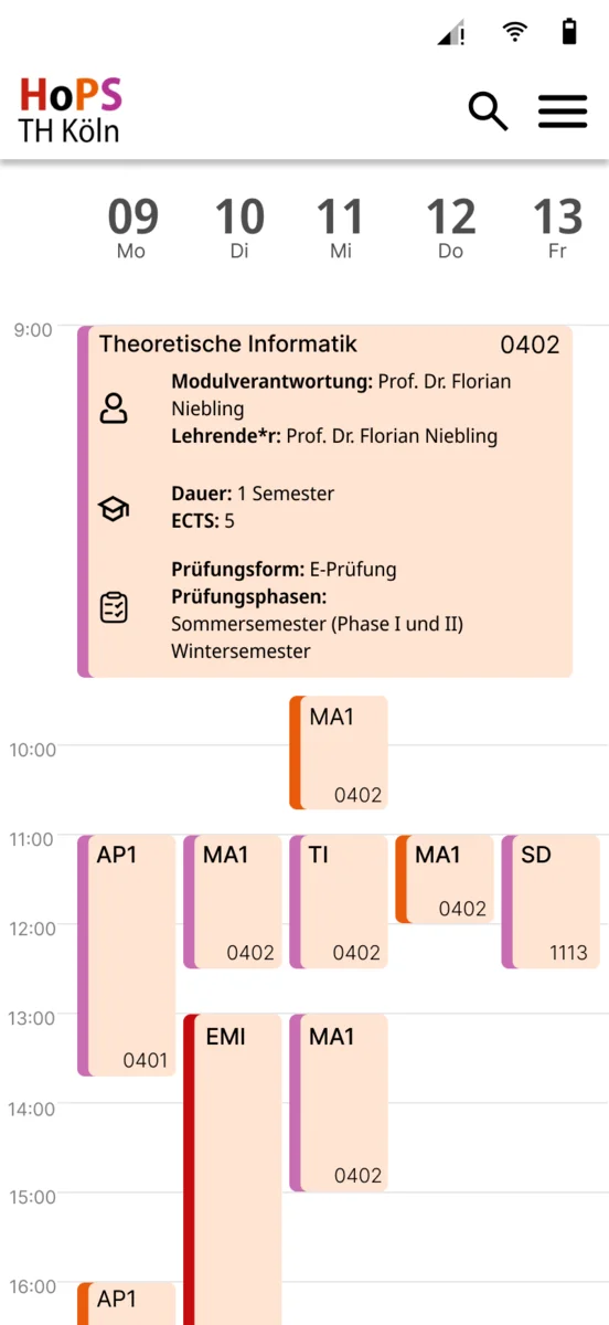 Das Ziel der diesjährigen Projektarbeit des Moduls Screendesign ist die visuelle und funktionale Neugestaltung des Hochschulplanungsystems HoPS der Technischen Hochschule Köln. Um den Anforderungen an ein modernes Campus-Management gerecht zu werden, wurde das bisherige Frontend-Interface grundlegend überarbeitet und in eine moderne und nutzerzentrierter Benutzeroberfläche überführt. Ein wesentlicher Fokus liegt dabei auf der Entwicklung eines responsiven Designs, welches die Usability auf verschiedenen Endgeräten, wie beispielsweise Smartphones und Desktops gewährleistet und somit Studierende und Lehrende effizient in ihrem Studienalltag unterstützt. Die Benutzeroberfläche orientiert sich dabei visuell an der bestehenden Gestaltungssprache der TH Köln.