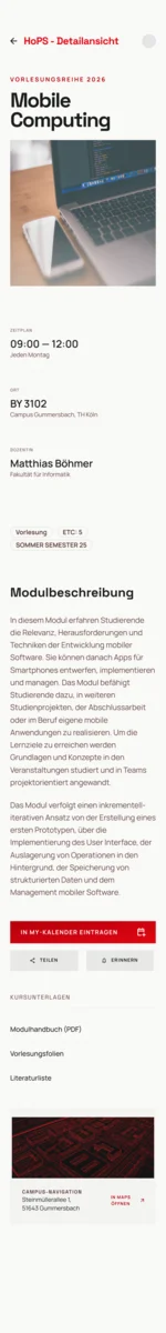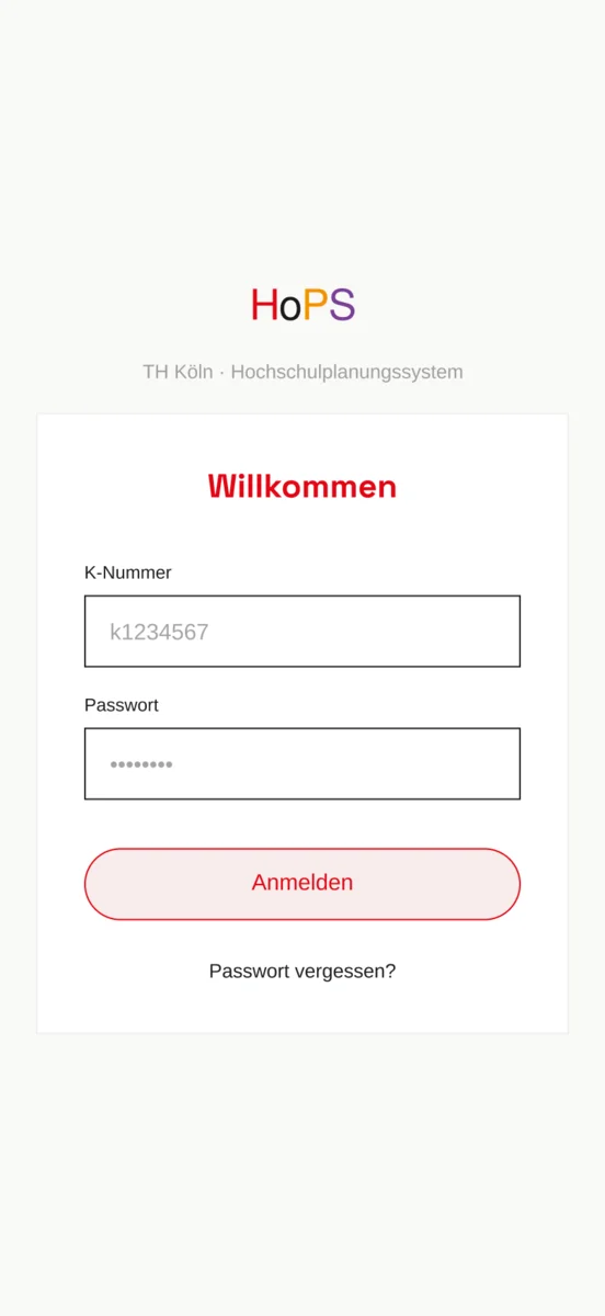 Im Rahmen des Moduls Screendesign stand die Aufgabe, eine bestehende Anwendung grundlegend zu überarbeiten. Die Ausgangssituation: das HoPS, das seinen Job zwar erfüllt, aber designtechnisch in der Vergangenheit feststeckt. Kein klares visuelles Konzept, keine Hierarchie, kaum Orientierung. Wer seinen nächsten Kurs sucht, muss sich erst durch die Oberfläche kämpfen. Das war der Startpunkt und gleichzeitig die Einladung, von Grund auf neu zu denken. Der erste Schritt war, zu verstehen, wer diese App eigentlich benutzt. Studierende im Alltag. Meistens unterwegs, oft gestresst, häufig auf dem Smartphone. Die App muss sofort funktionieren beim Aufwachen, auf dem Weg zur Bahn, zwischen zwei Vorlesungen. Das hat erhebliche Auswirkungen auf den Designprozess Mobile First war hier keine Designphilosophie, sondern schlicht die Realität der Nutzer.