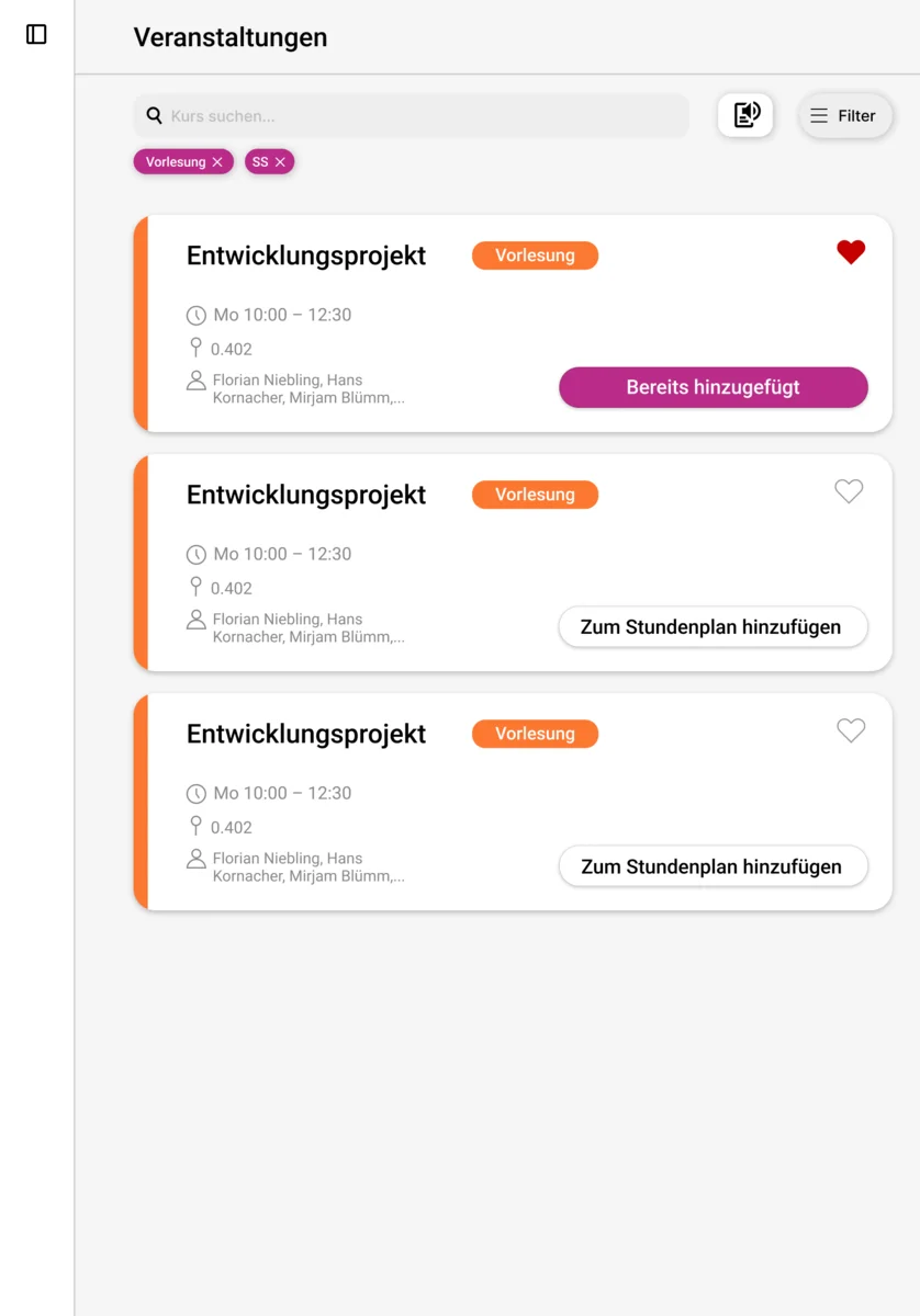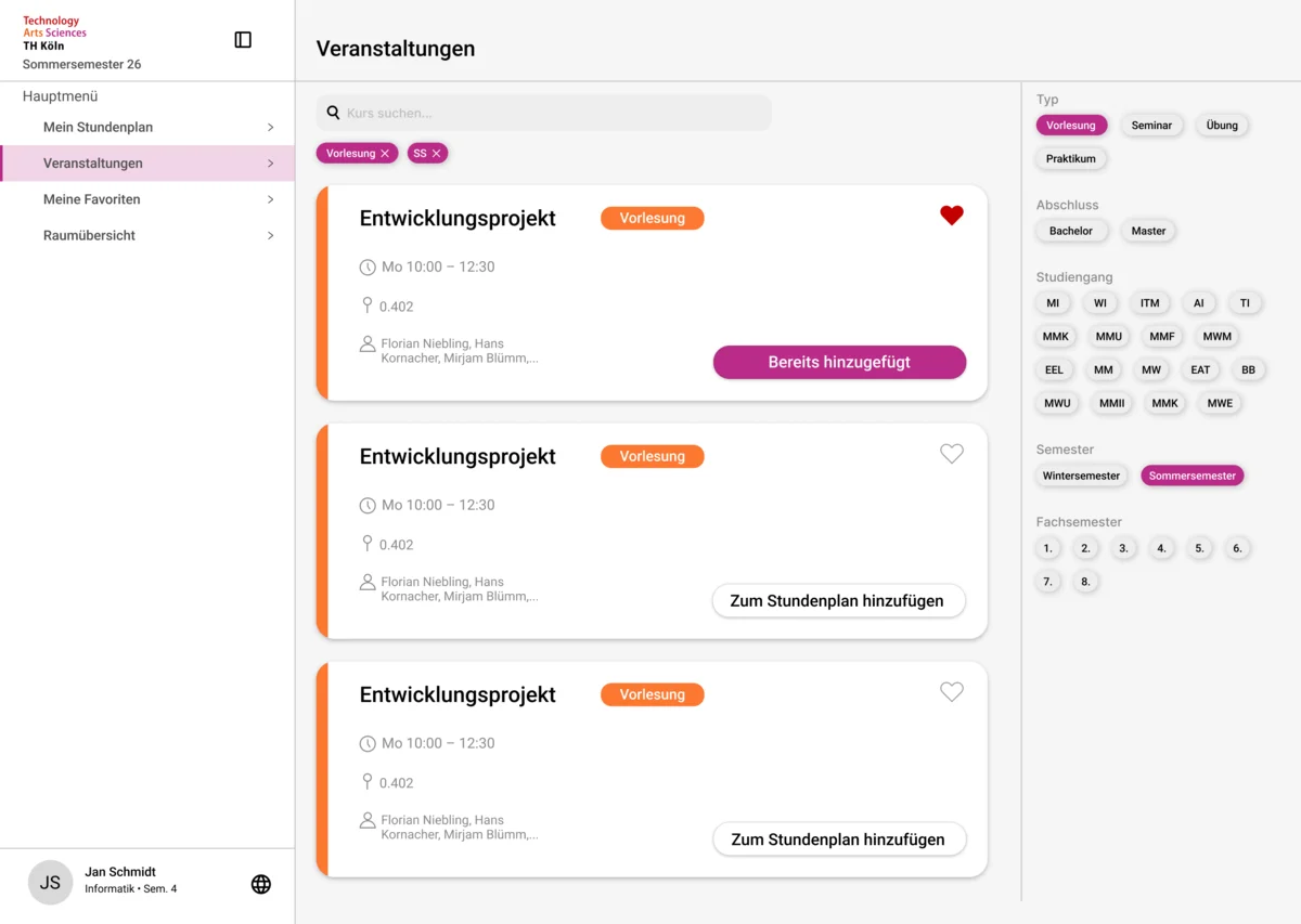 Ziel des Projekts war es, die Orientierung innerhalb der Veranstaltungsübersicht zu verbessern und eine intuitive Nutzung zu ermöglichen.